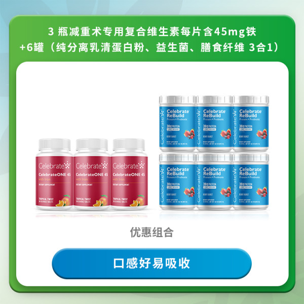 3 个月用量的 CelebrateONE 45 每天一片减重术专用复合维生素咀嚼片 + Celebrate ReBuild Protein + Probiotics 纯分离乳清蛋白+益生菌+膳食纤维粉 - ¥3647 (8.5折)