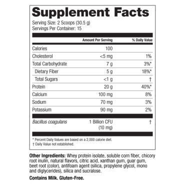Celebrate ReBuild Protein + Probiotics 纯分离乳清蛋白+益生菌+膳食纤维粉还包含可溶性玉米纤维,帮助您更长时间地保持饱腹感,促进钙的吸收、骨骼健康和肠道健康。