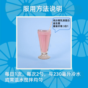 每天1次,每次2勺,混入 230 毫升或更多常温水中,或与您最喜欢的奶制品(脱脂牛奶)或豆奶饮品混合,口感更美味。袋子里自带量杯。